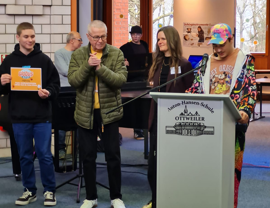 Außerdem überreichte Michael Impfling von der Globus-Stiftung einen Scheck zur Förderung unserer Sozialkompetenz-Projekte.