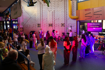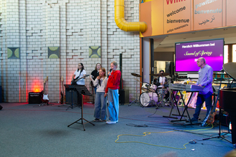 Überrascht wurde das Publikum durch die junge Band von 5.- 7. Klässer*innen. Das Lied „Wozu sind Kriege da“ von Neele Heininger gesungen, ließ manches Auge nicht trocken. Ihre Stimme berührte durch ihre Zartheit und Intensität und die junge Sängerin überzeugte mit großer Bühnenpräsenz ebenso wie die Josephine Roth, die das Lied „Komm, bleib dabei“ mit großer Dynamik darbot. Die Mini-Band unter der Leitung von Dietmar Kempf mit den Musiker*innen Abbygale Rodriguez, Ena Hasic und Marlon Stoll wird uns noch lange überraschen.